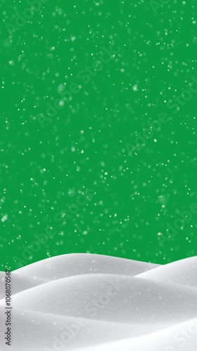 Wall mural : Snowy white field with green background and loop snowfall vertical animation -
