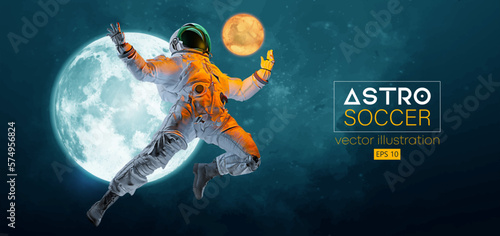 The watermark will not be included on Wall mural.: Soccer football player astronaut in space action and moon, mars planets on the background of the spa