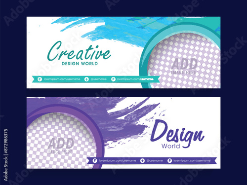 The watermark will not be included on Wall mural.: Social media banner or header design set with copy space in abstract brush stroke effect -