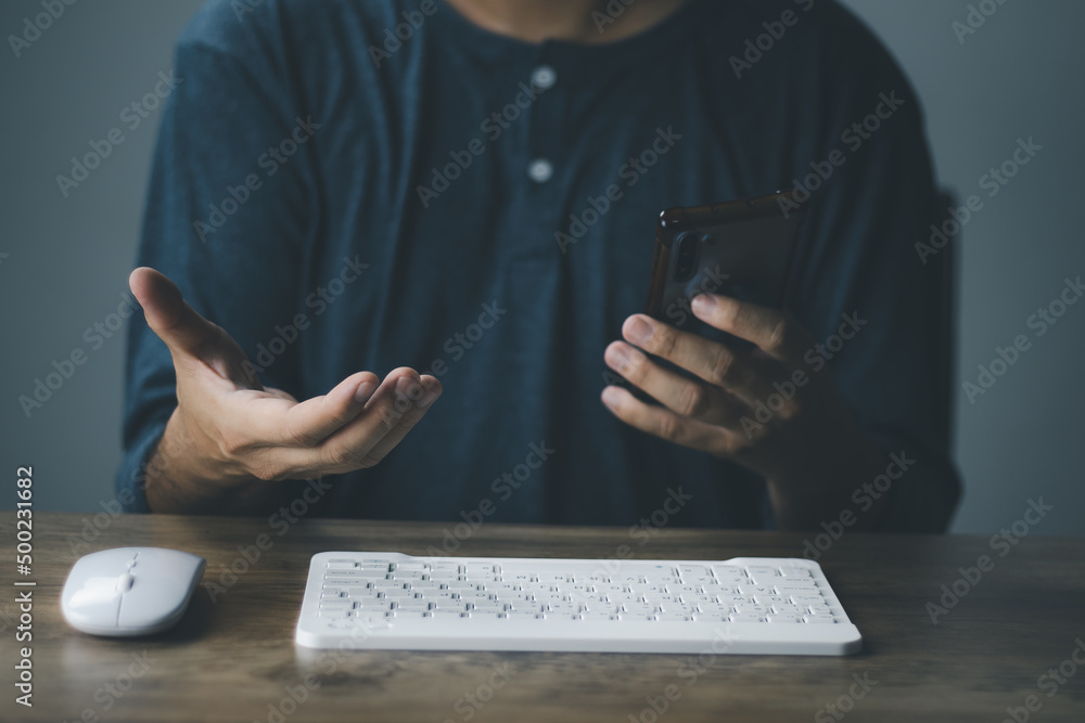 The watermark will not be included on Wall mural.: Social media technology concept men are using computer for social media and online marketing includi