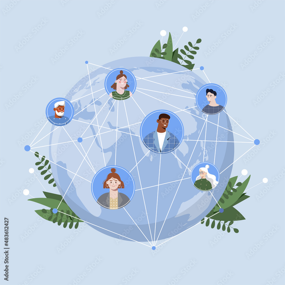 Wall mural social network concept. avatars of characters connected by network on globe. modern technologies and - Wall murals Wall mural social network concept. avatars of characters connected by network on globe. modern technologies and - Wall murals