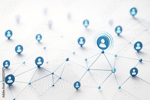 Wall mural : Social network connection concept with user icons linked by blue lines on light background symbolizi