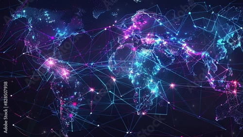 Wall mural social network networking concept design. digital world map with users worldwide connections. commun