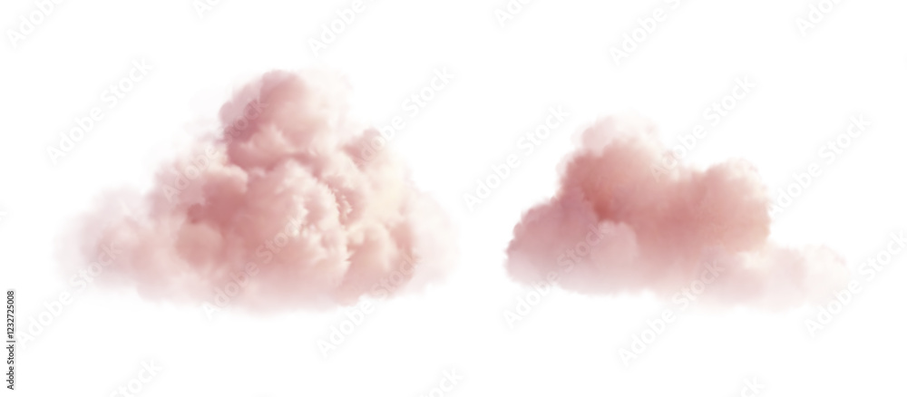 The watermark will not be included on Wall mural.: Soft and fluffy pink clouds isolated on a white background - a pair of light pink clouds floating ser