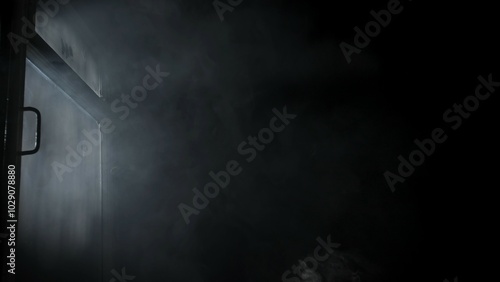 The watermark will not be included on Wall mural.: Soft diffused rays of light illuminate the foggy darkness and the window -