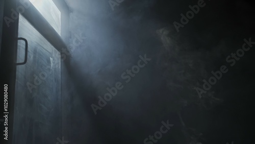 Wall mural : Soft diffused rays of light illuminate the foggy darkness and the window -
