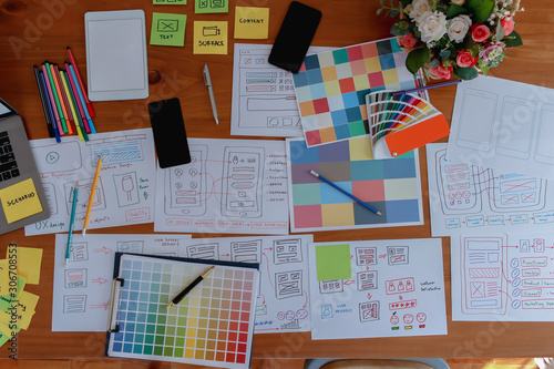 Wall mural soft focus,a team of ui / ux web designers are working together to develop a mobile responsive websi - Wall murals Wall mural soft focus,a team of ui / ux web designers are working together to develop a mobile responsive websi - Wall murals