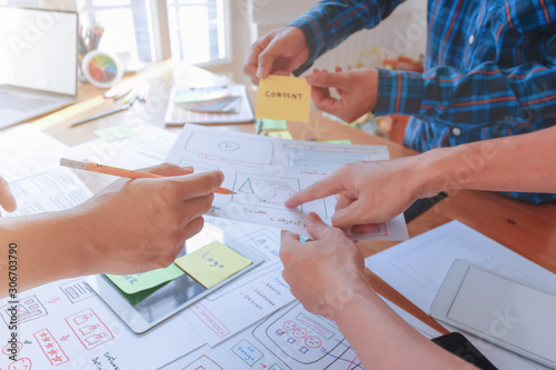 Wall mural soft focus,a team of ui / ux web designers are working together to develop a mobile responsive websi - Wall murals Wall mural soft focus,a team of ui / ux web designers are working together to develop a mobile responsive websi - Wall murals