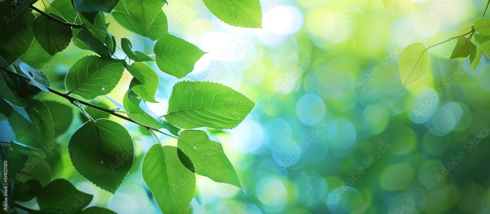 Wall mural soft focus on green leaves provides a backdrop with selective elements for a copy space image