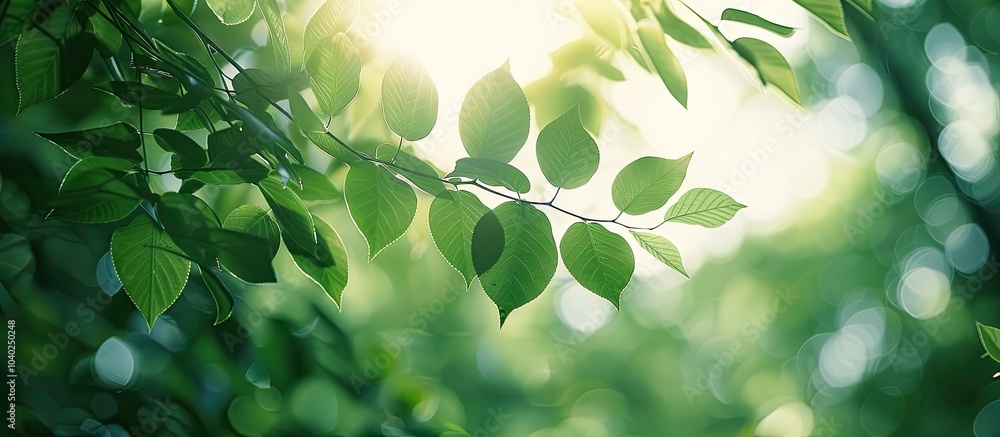 The watermark will not be included on Wall mural.: Soft focus on green leaves provides a backdrop with selective elements for a copy space image