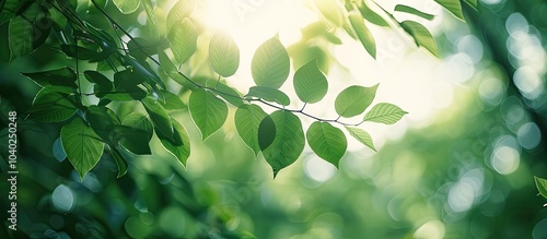 Wall mural soft focus on green leaves provides a backdrop with selective elements for a copy space image