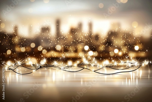The watermark will not be included on Wall mural.: Soft gradient gold background with abstract blur and shimmering stars to emphasize and promote produ