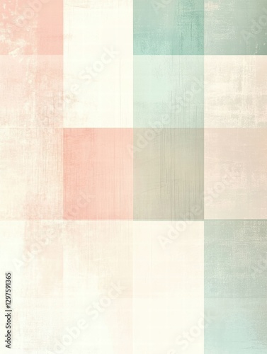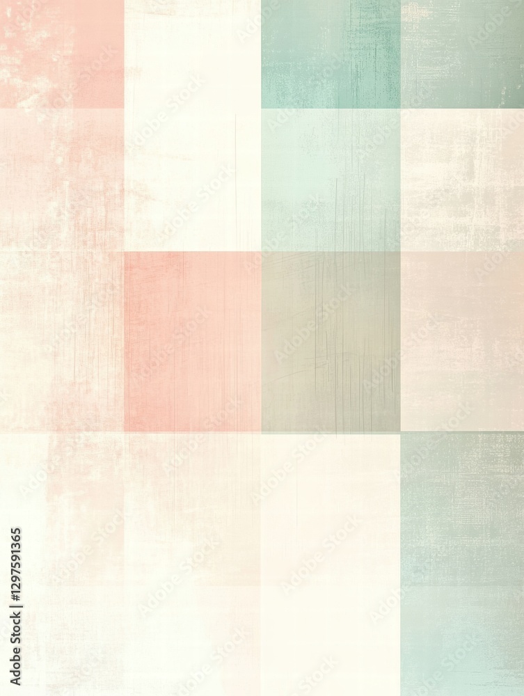The watermark will not be included on Wall mural.: Soft pastel colored geometric pattern with a mix of muted squares and rectangles on a textured backg