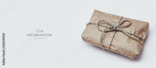 Wall mural soft pouch wrapped in craft paper and tie hemp string. white background. isolation. web article temp
