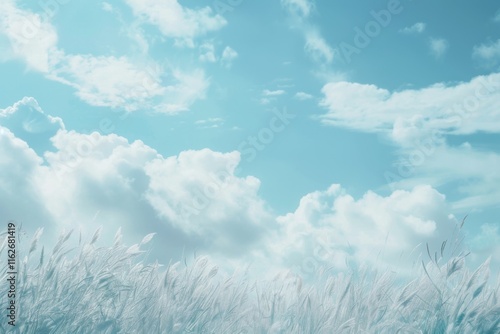 The watermark will not be included on Wall mural.: Soft smooth white clouds with pastel color of sky - for abstract background