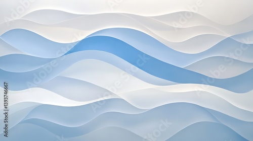 Wall mural : Soft waves in light blue and white create a gentle, flowing abstract pattern