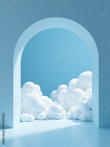 Wall mural soft white clouds drift gently through a serene blue tunnel, creating an abstract minimal background