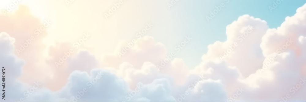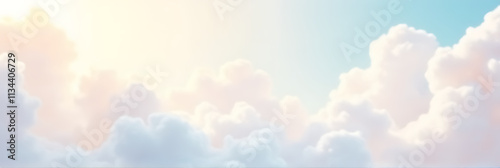 Wall mural : Soft white clouds with gentle pastel hues create a serene abstract background for artistic expressio
