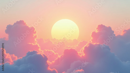 Wall mural softly blended sun clouds create beautiful mesh gradient