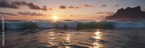 Wall mural softly glowing waves flow across the ocean surface, creating an ethereal atmosphere at dusk, soothin