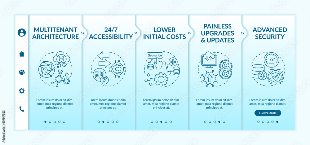 Wall mural : Software as service advantages onboarding vector template - multitenant architecture - lower initial c