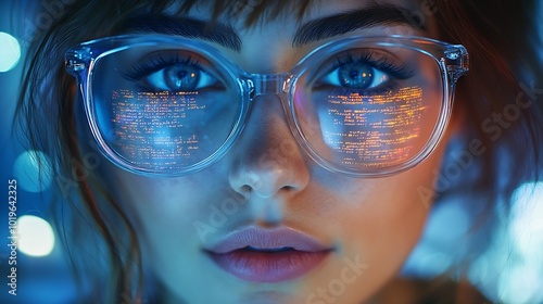 Wall mural : Software coding hologram and woman in data analytics information technology and gdpr overlay program