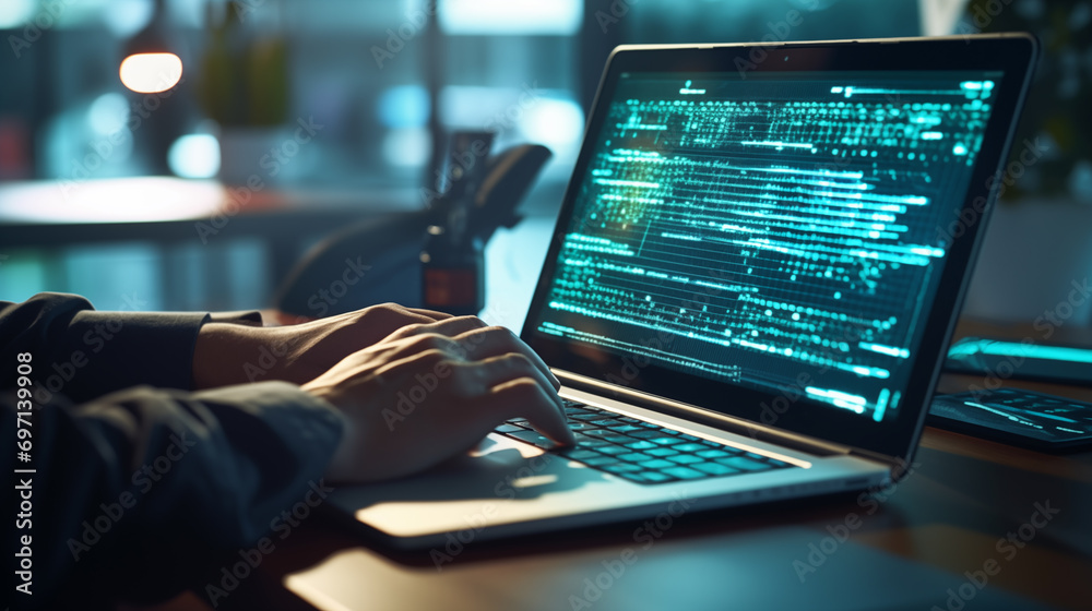 The watermark will not be included on Wall mural.: Software developer coding in laptop
