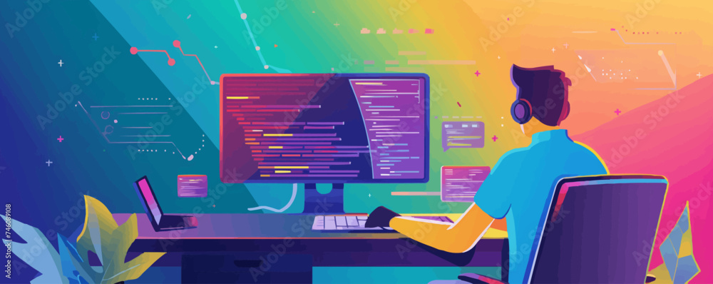 Wall mural software developer concept. software development company. develop programming and coding. software d