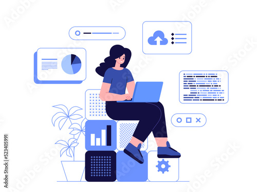 The watermark will not be included on Wall mural.: Software developer freelancer working on web and application development on computers business woman