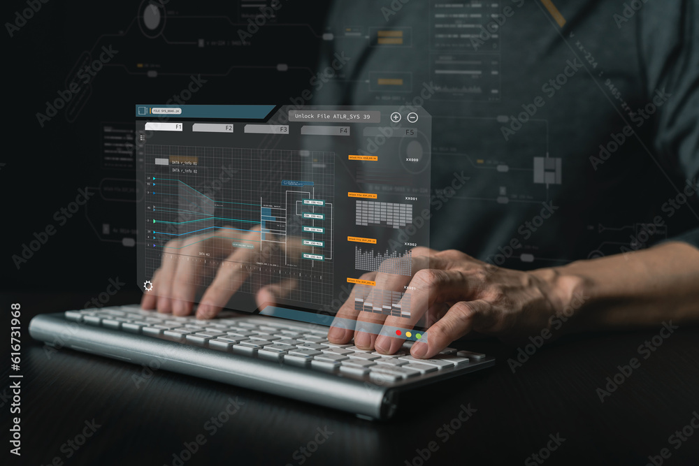 The watermark will not be included on Wall mural.: Software developer or programmer coding program with laptop - create intelligence innovation - compute