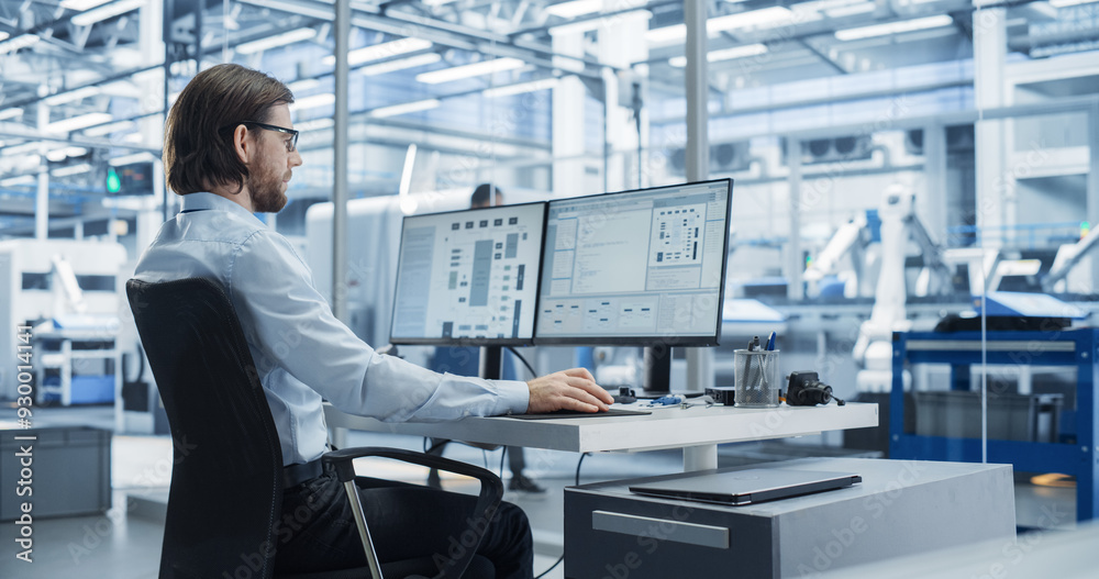 The watermark will not be included on Wall mural.: Software developer programming an artificial intelligence neural network on a desktop computer - male