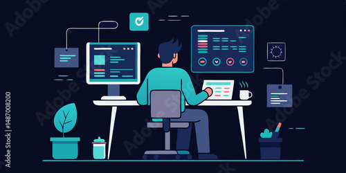 Wall mural software developer working late on computer project - Wall murals Wall mural software developer working late on computer project - Wall murals