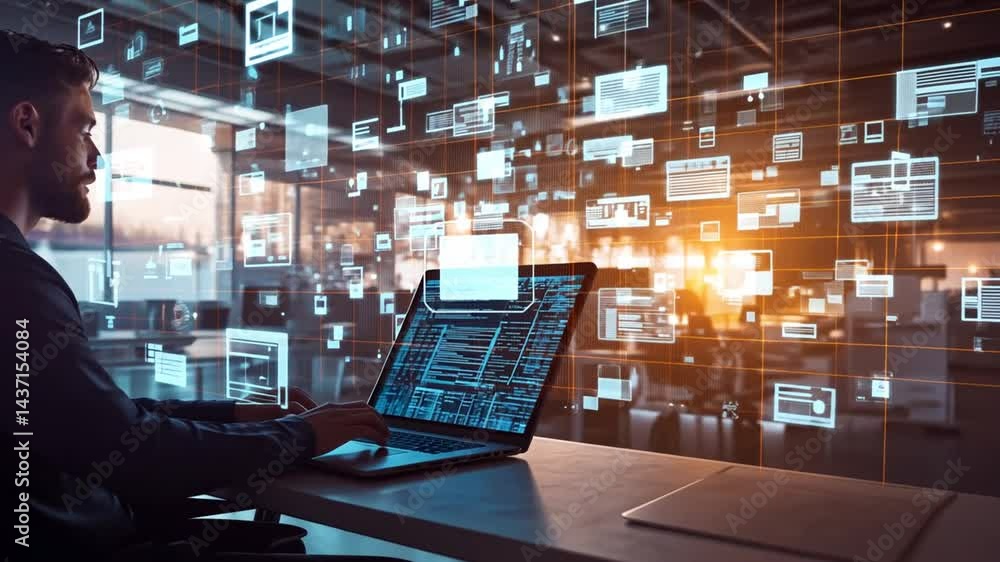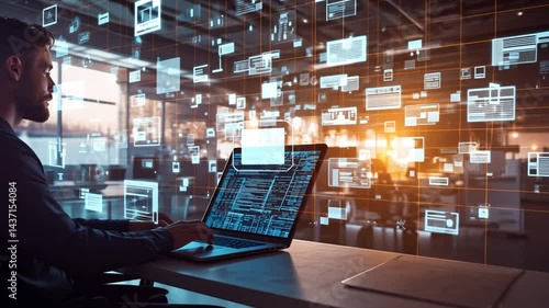 Wall mural software developer working on a project in a modern office. the image shows a man programming on a l