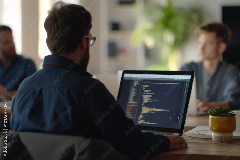 The watermark will not be included on Wall mural.: Software developers working on a project in a modern office
