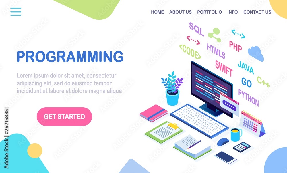 Wall mural software development, programming language, coding. 3d isometric laptop, computer with digital appli - Wall murals Wall mural software development, programming language, coding. 3d isometric laptop, computer with digital appli - Wall murals