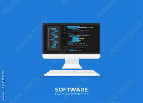 Wall mural : Software development and programming, program code on laptop screen, big data processing, computing