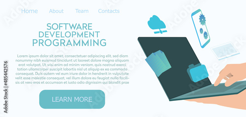 Wall mural software development and programming. program code, storage, filing on laptop screen. flat vector il