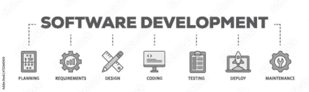 Wall mural software development banner web icon illustration concept with icon of planning, requirements, desig - Wall murals Wall mural software development banner web icon illustration concept with icon of planning, requirements, desig - Wall murals