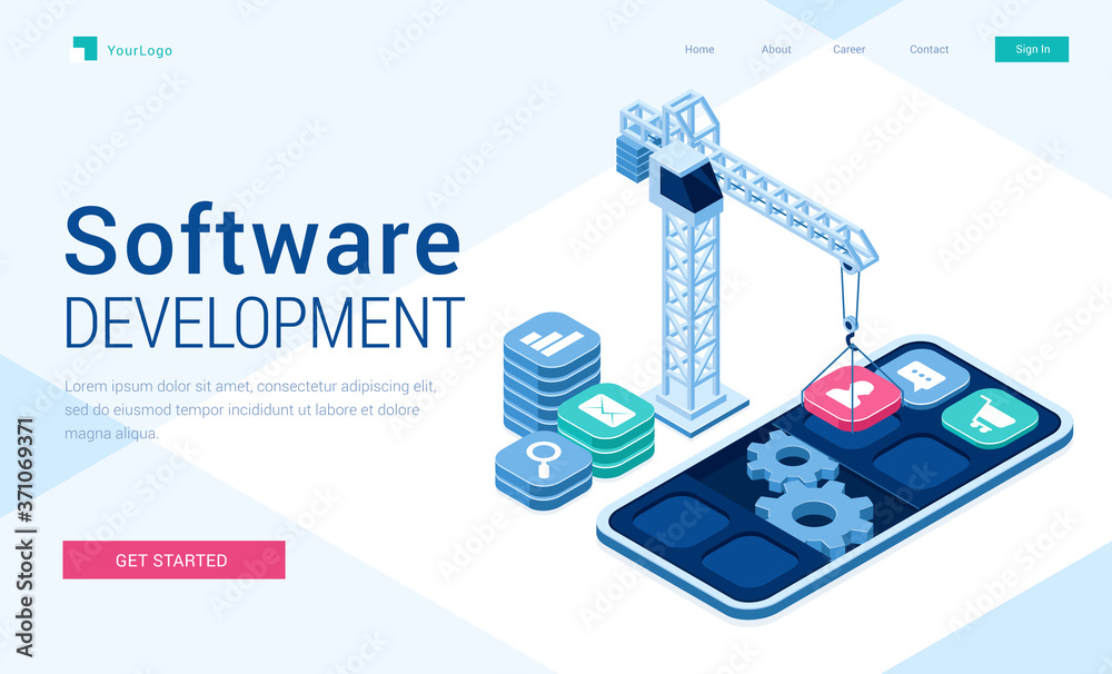 Software development banner - concept of engineering and programming mobile applications, website apiWall mural