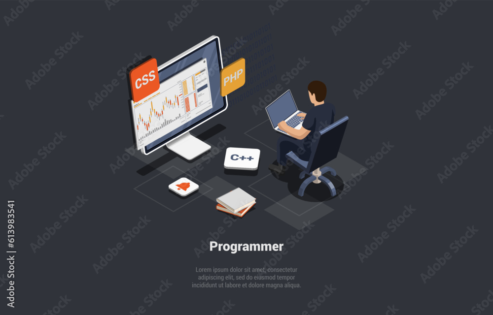 Software development coding process - programmer web developer coding app for trading using php progrWall mural