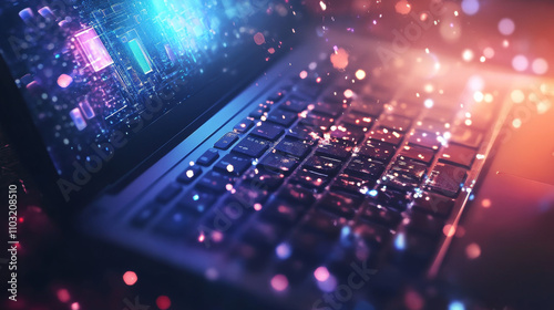 The watermark will not be included on Wall mural.: Software development conceptual abstract banner, background - creating computer program, code on lapt