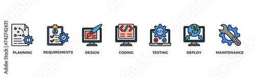 Wall mural : Software development life cycle banner web icon vector illustration concept of sdlc with icon of pla