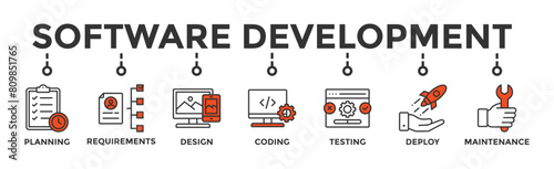 Wall mural software development life cycle banner web icon vector illustration concept of sdlc with icon of pla - Wall murals Wall mural software development life cycle banner web icon vector illustration concept of sdlc with icon of pla - Wall murals