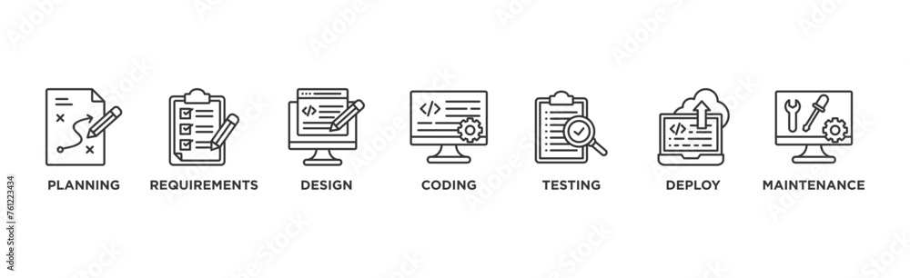 Wall mural software development life cycle banner web icon vector illustration concept of sdlc with icon of pla - Wall murals Wall mural software development life cycle banner web icon vector illustration concept of sdlc with icon of pla - Wall murals