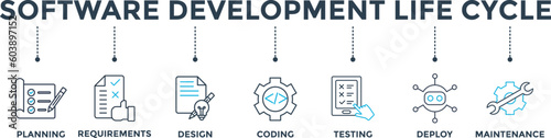 Wall mural software development life cycle banner web icon vector illustration concept of sdlc with icon of pla - Wall murals Wall mural software development life cycle banner web icon vector illustration concept of sdlc with icon of pla - Wall murals