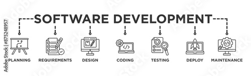 Wall mural software development life cycle banner web icon vector illustration concept of sdlc with icon of pla - Wall murals Wall mural software development life cycle banner web icon vector illustration concept of sdlc with icon of pla - Wall murals