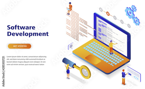 Wall mural : Software development modern flat design isometric concept - developer and people concept - landing pag