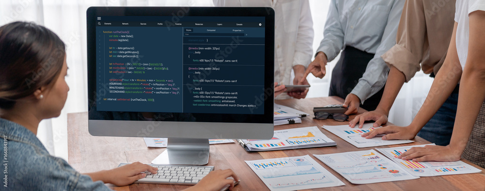 The watermark will not be included on Wall mural.: Software development programming on computer screen for brisk application and program coding