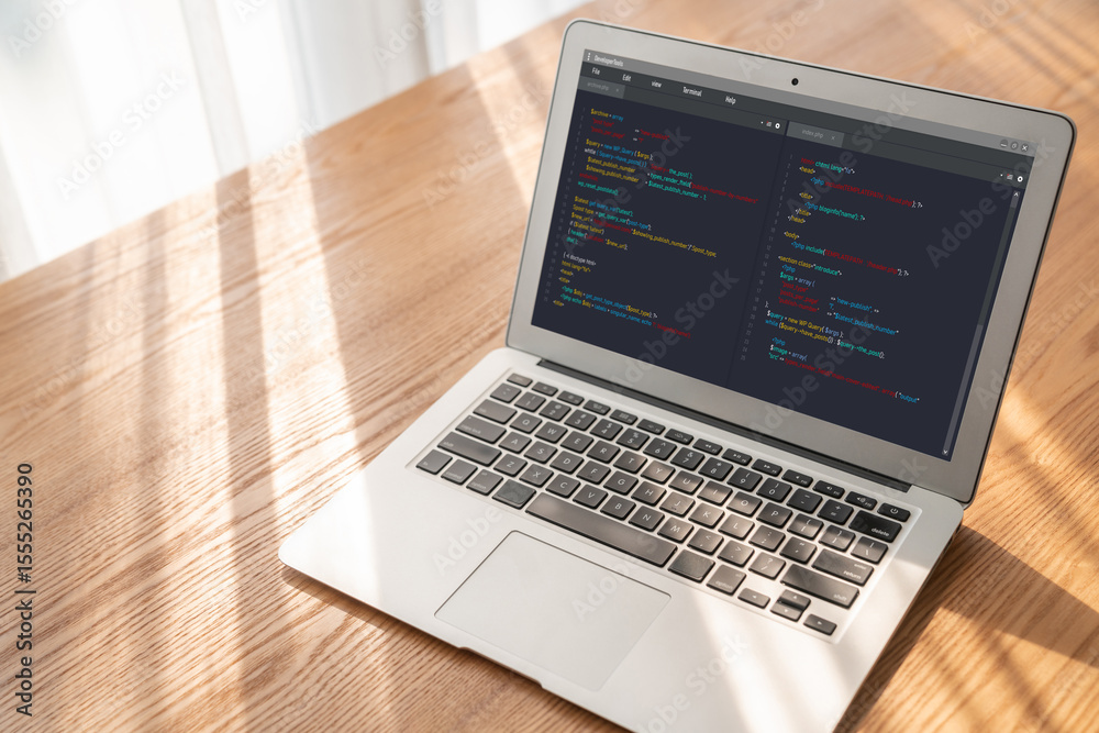 The watermark will not be included on Wall mural.: Software development programming on computer screen for modish application and program coding