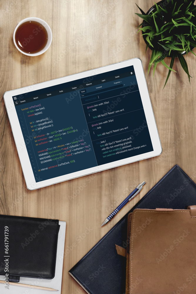 The watermark will not be included on Wall mural.: Software development programming on computer screen for modish application and program coding